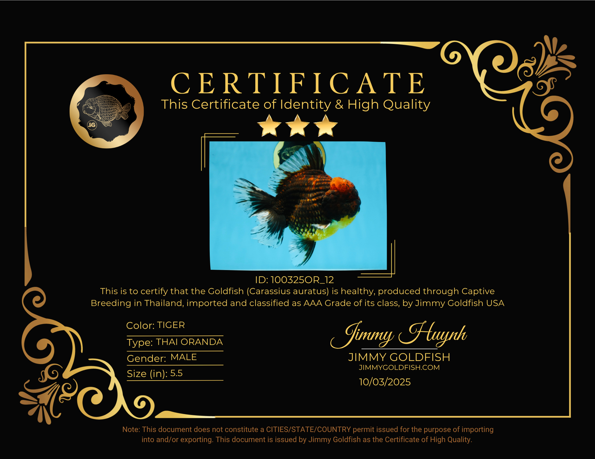AAA Grade Godzilla Tiger Oranda Male 5.5 inches #100325OR_12