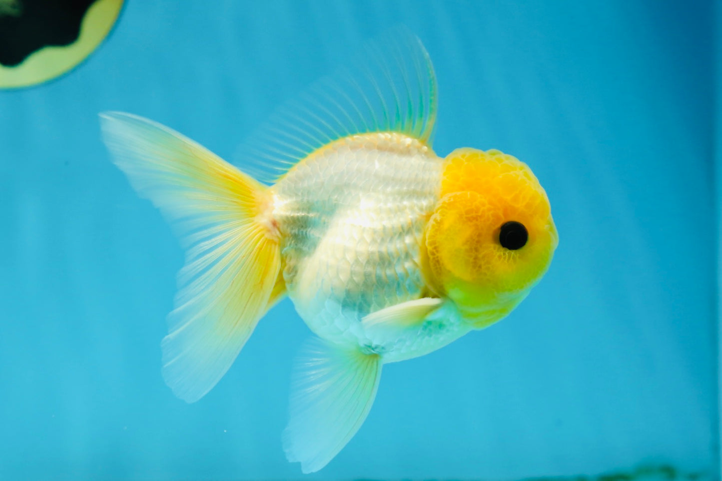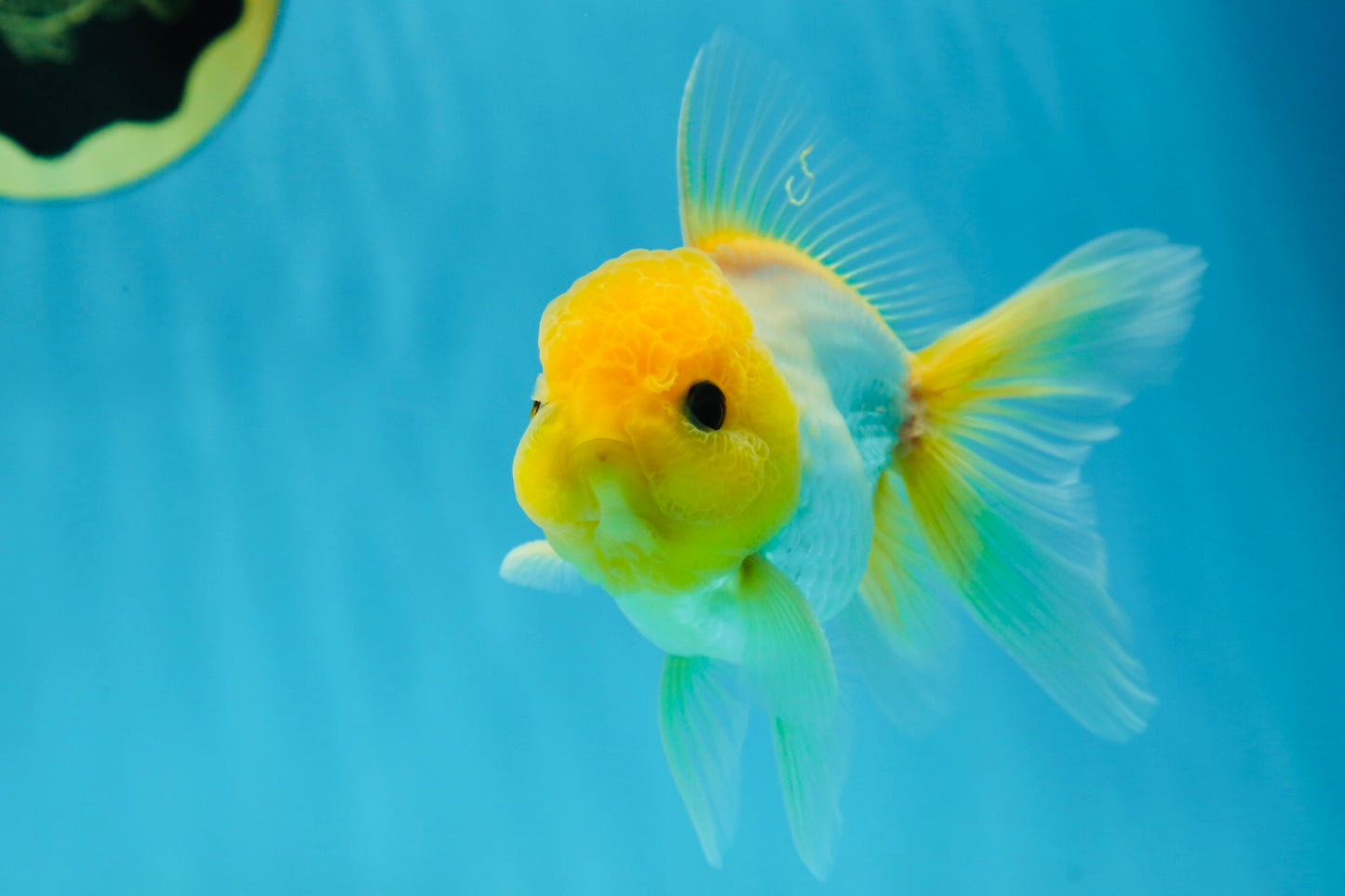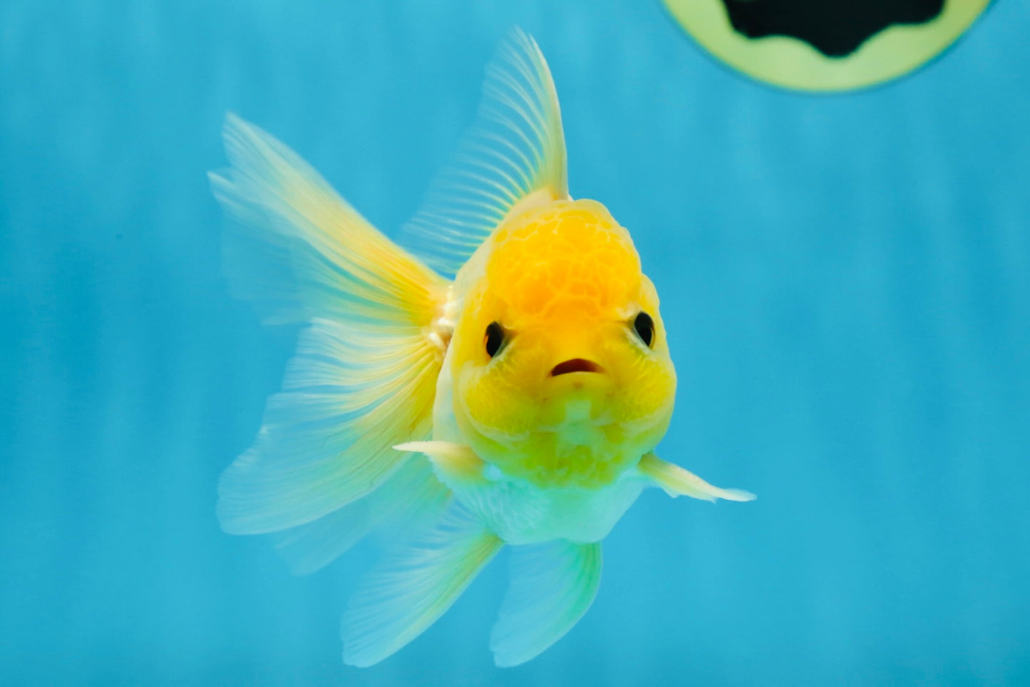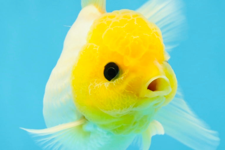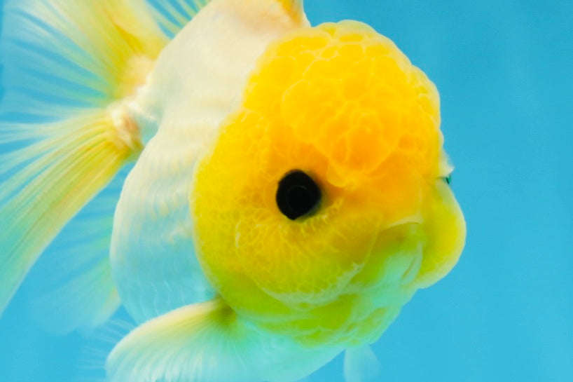 With a bright lemon-colored wen and adorable button eyes, this Oranda is full of personality. A true delight for any goldfish lover. #JimmyStyle