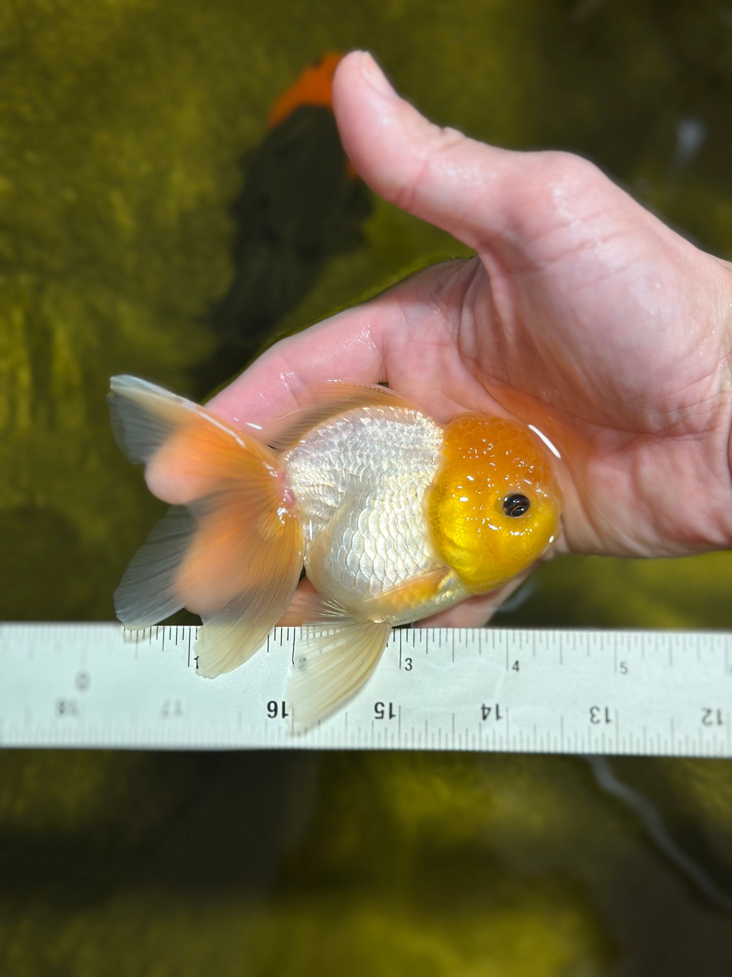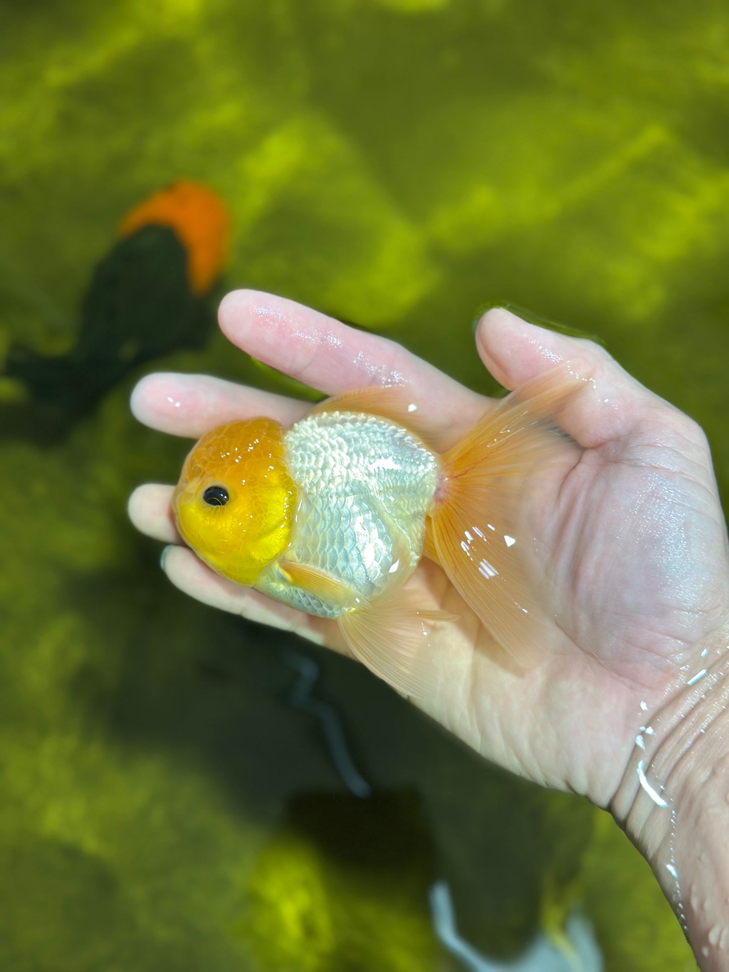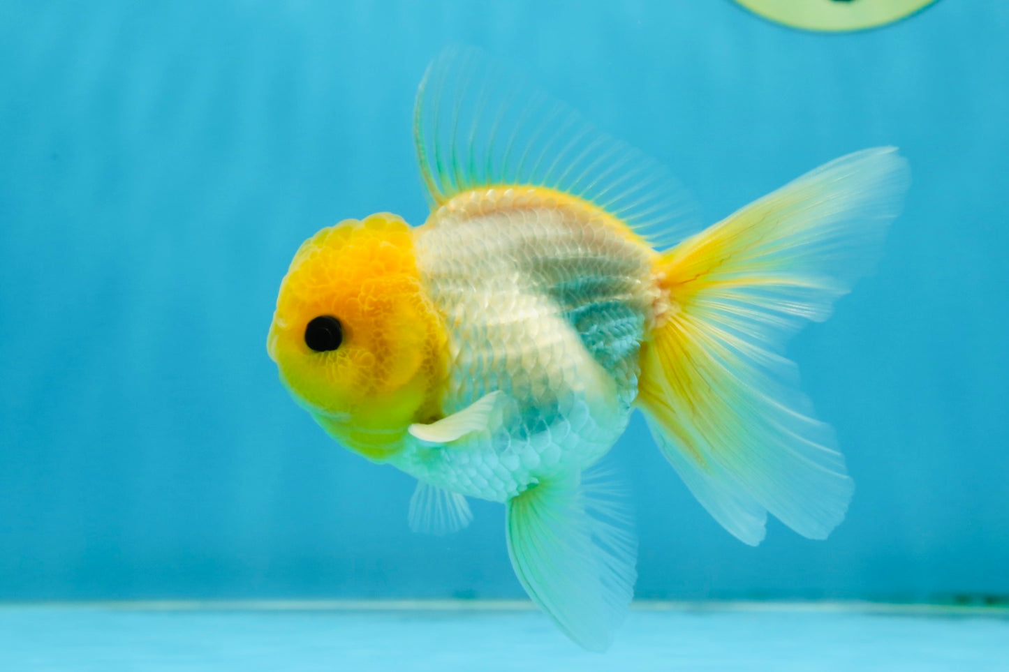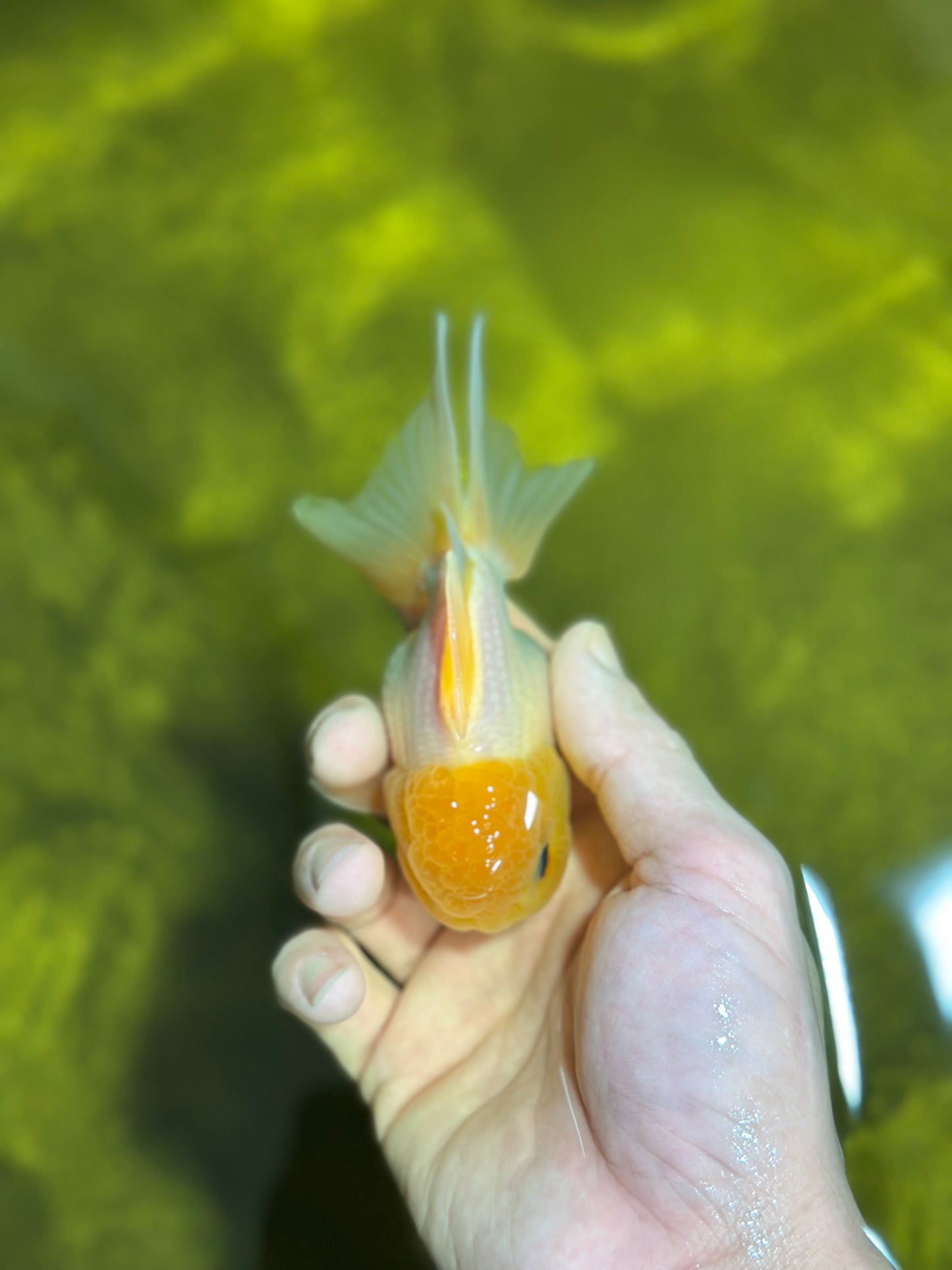 With a bright lemon-colored wen and adorable button eyes, this Oranda is full of personality. A true delight for any goldfish lover. #JimmyStyle