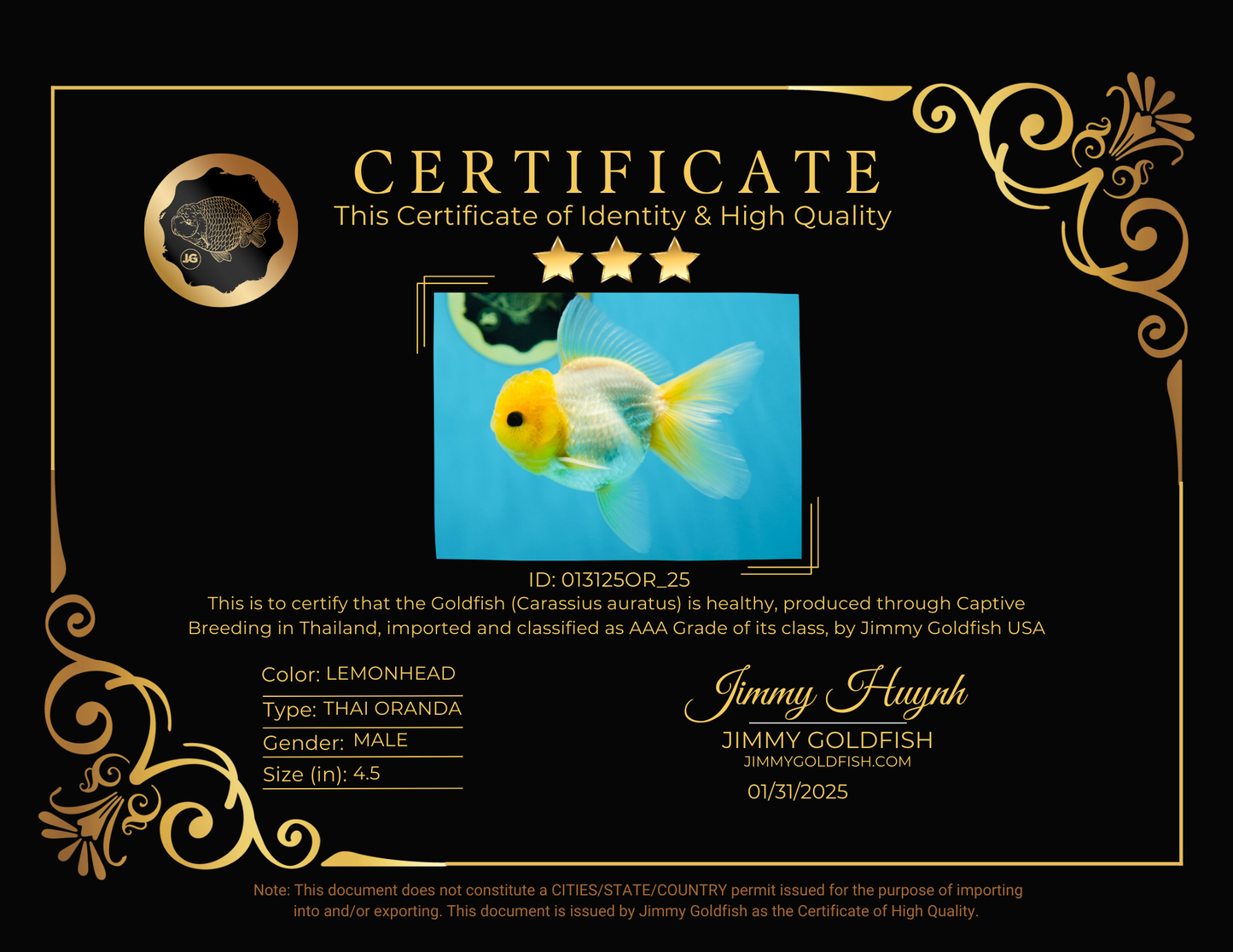 Health: Every fish has completed our strict quarantine procedure. Healthy and active condition. Disease-free guarantee.
