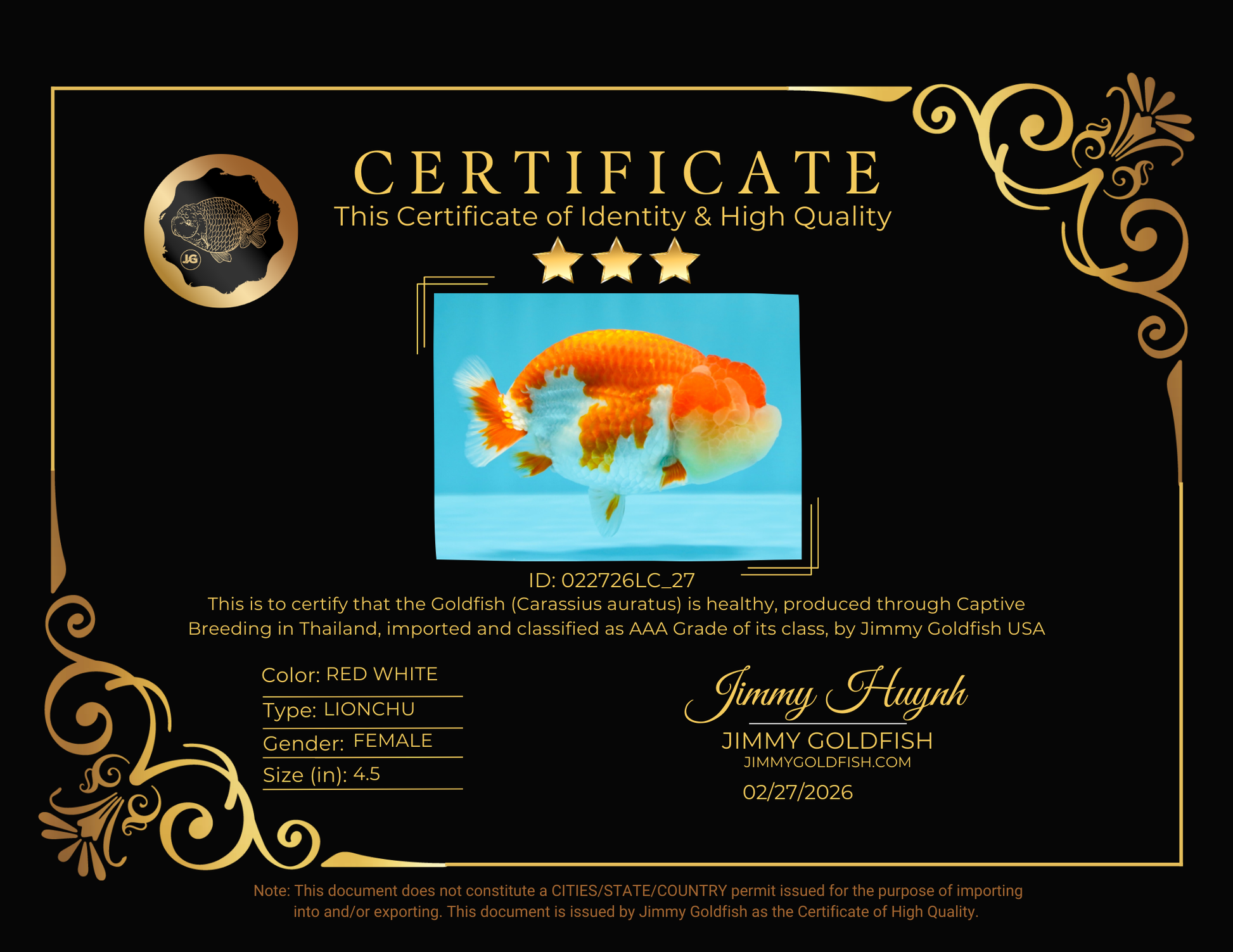 Health: Every fish has completed our strict quarantine procedure. Healthy and active condition. Disease-free guarantee.