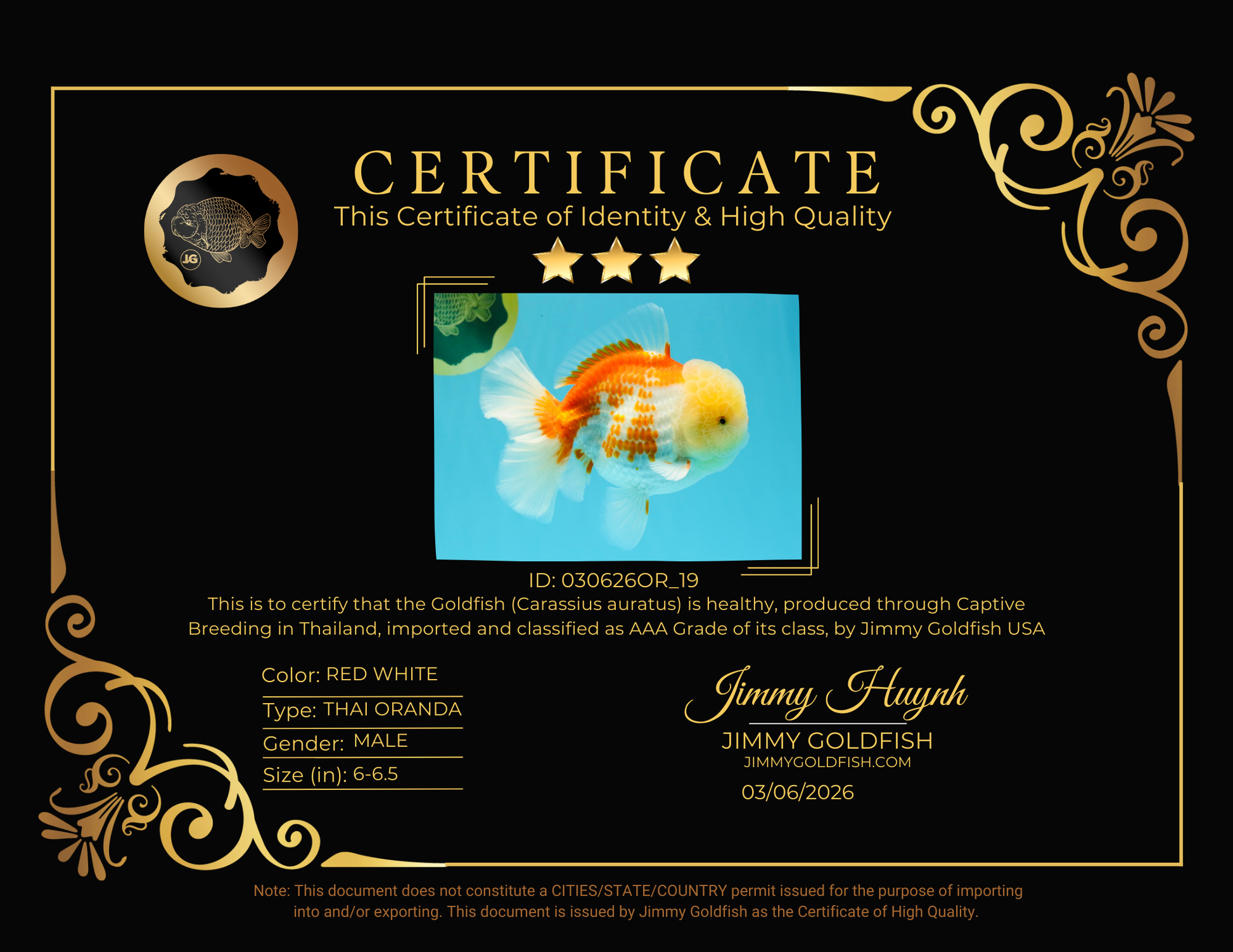 Health: Every fish has completed our strict quarantine procedure. Healthy and active condition. Disease-free guarantee.