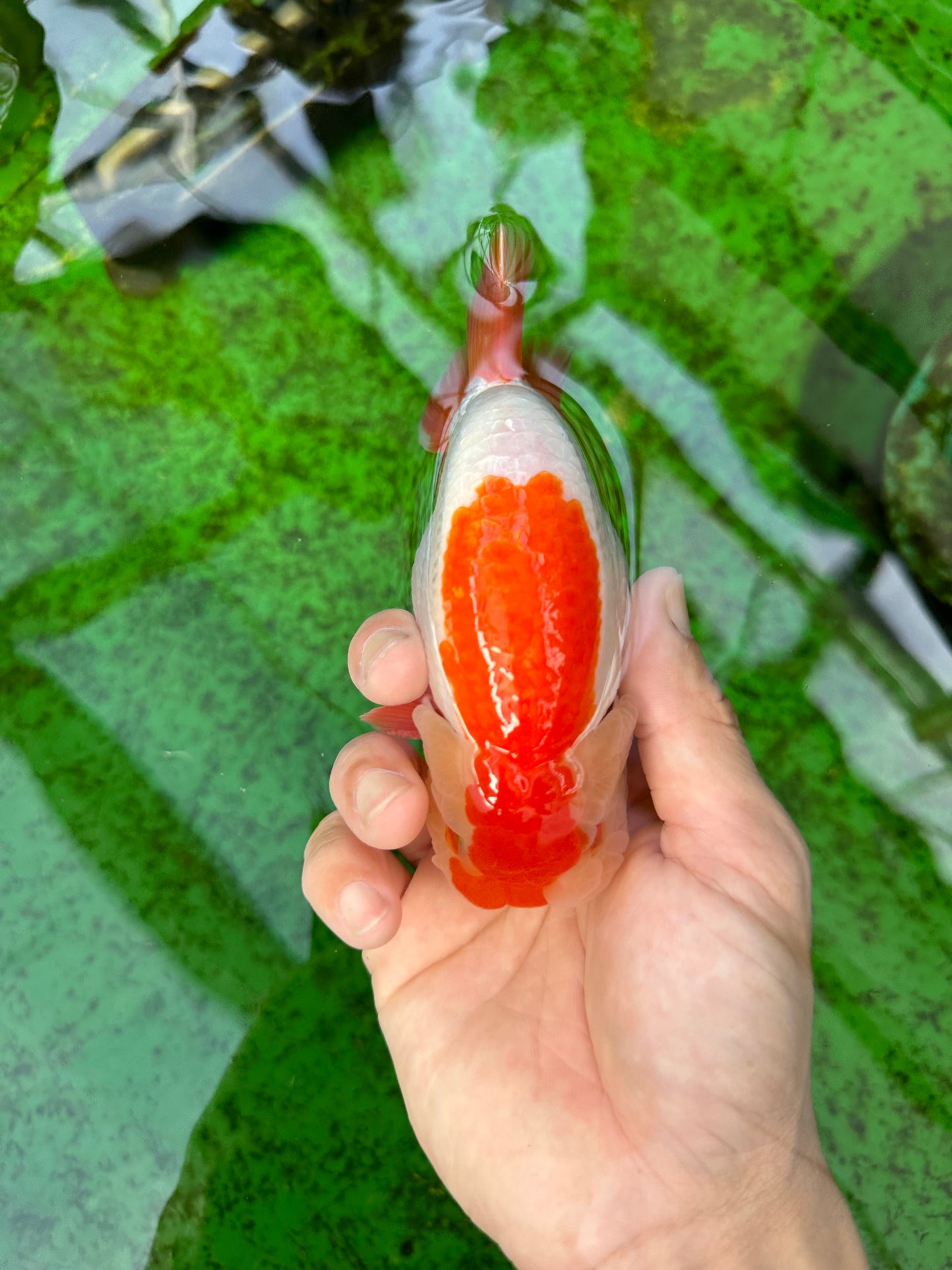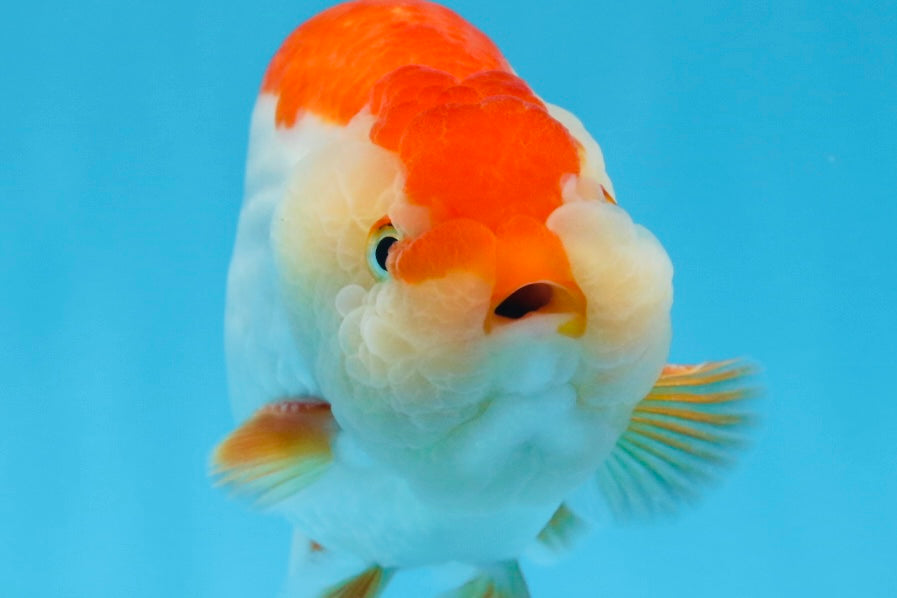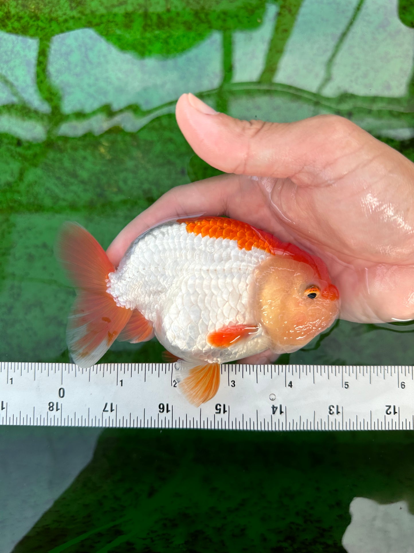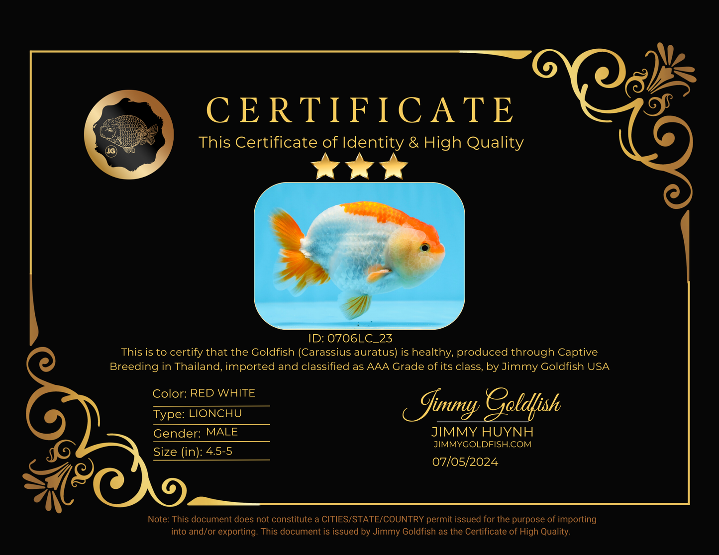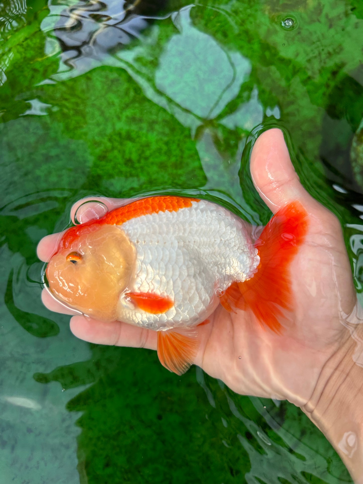 Introducing the AAA Grade Red White LionKing! This premium goldfish boasts a unique color mark and Jimmy Style. With a chunky body and rounded belly, it's not only beautiful but super healthy too. At 4.5-5 inches, it's the perfect size for any aquarium. (Not to mention, its lovely character is sure to make a splash!)