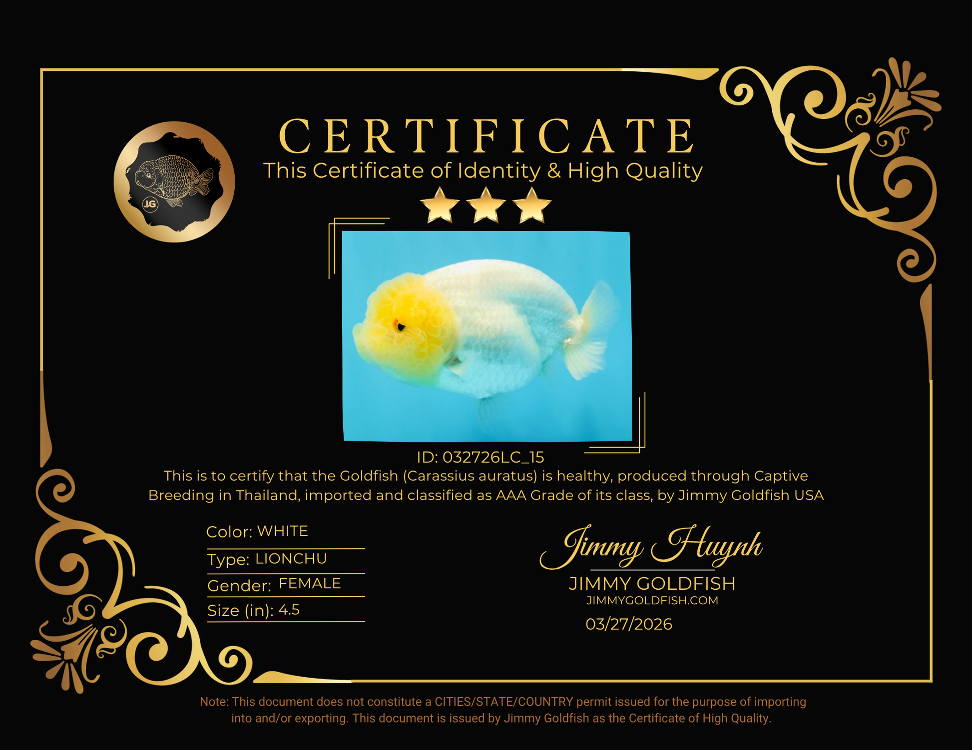 Health: Every fish has completed our strict quarantine procedure. Healthy and active condition. Disease-free guarantee.