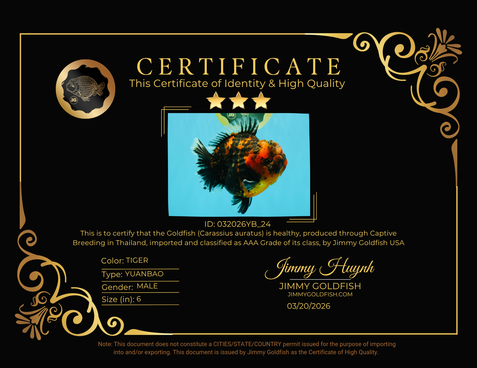 CHONKY AAA Grade Tiger Yuanbao Male 6 inches #032026YB_24