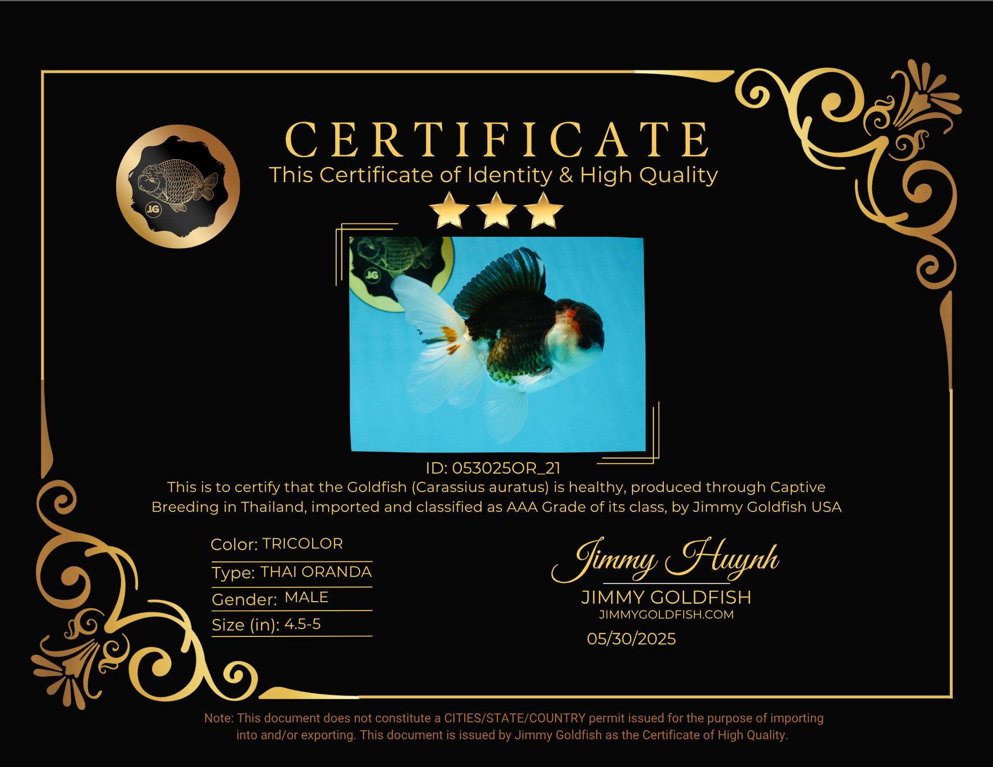 AAA Grade Tricolor Button Eyes Oranda Male 4.5-5 inches #053025OR_21
