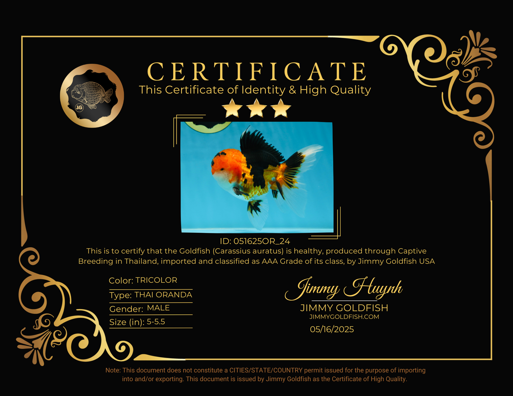 AAA Grade Tricolor Oranda Male 5-5.5 inches #051625OR_24