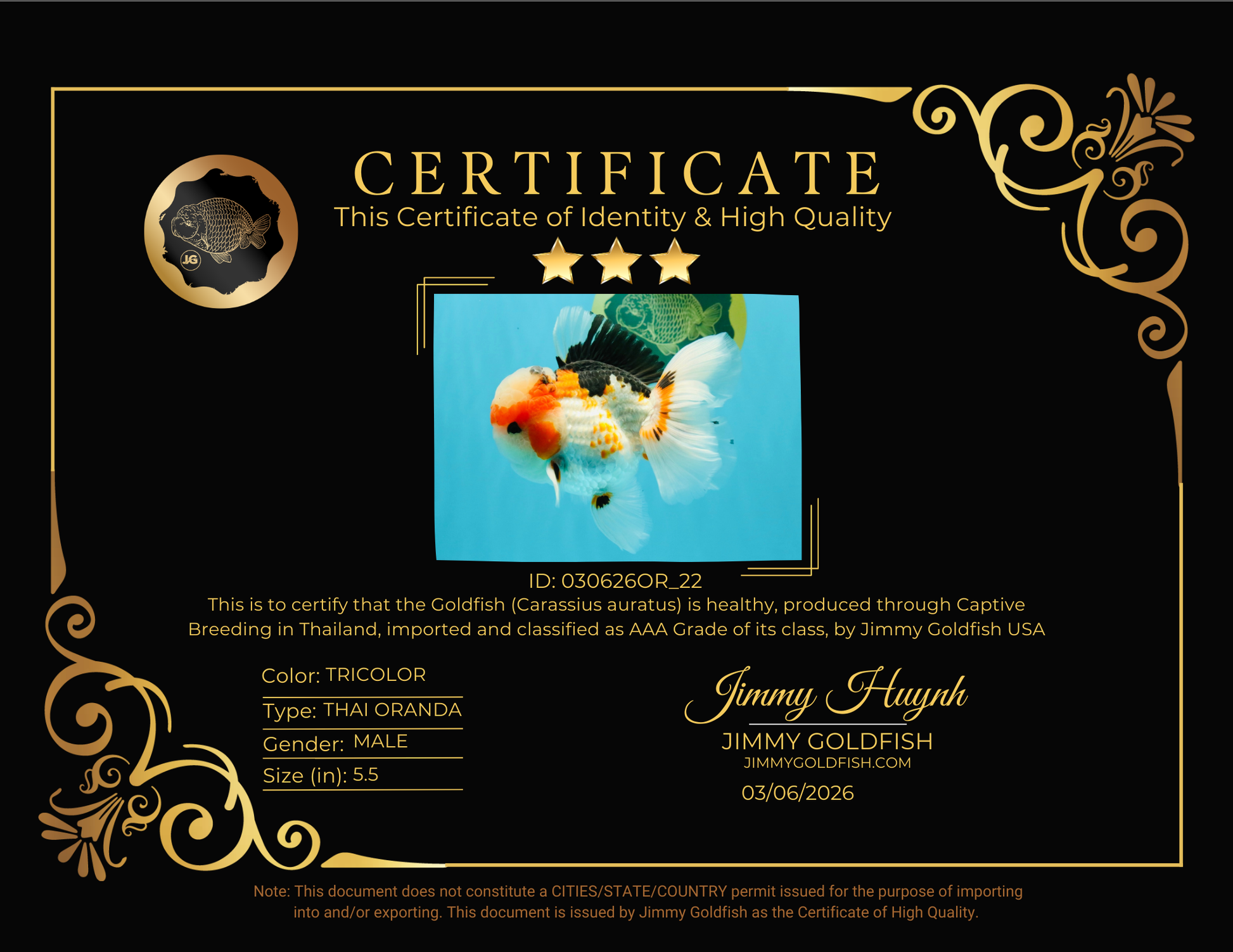 AAA Grade Tricolor Oranda Male 5.5 inches #030626OR_22