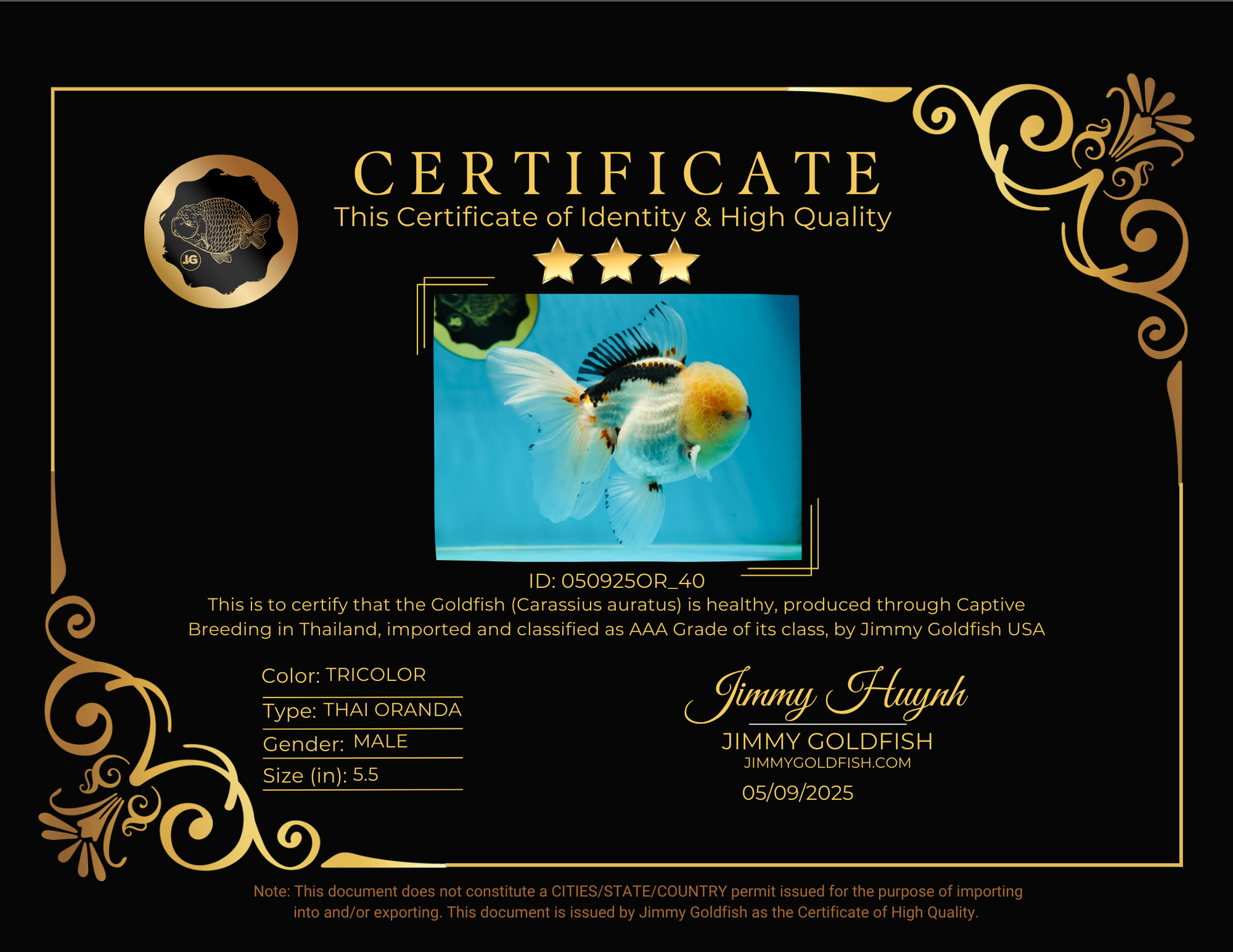AAA Grade Tricolor Oranda Male 5.5 inches #050925OR_40