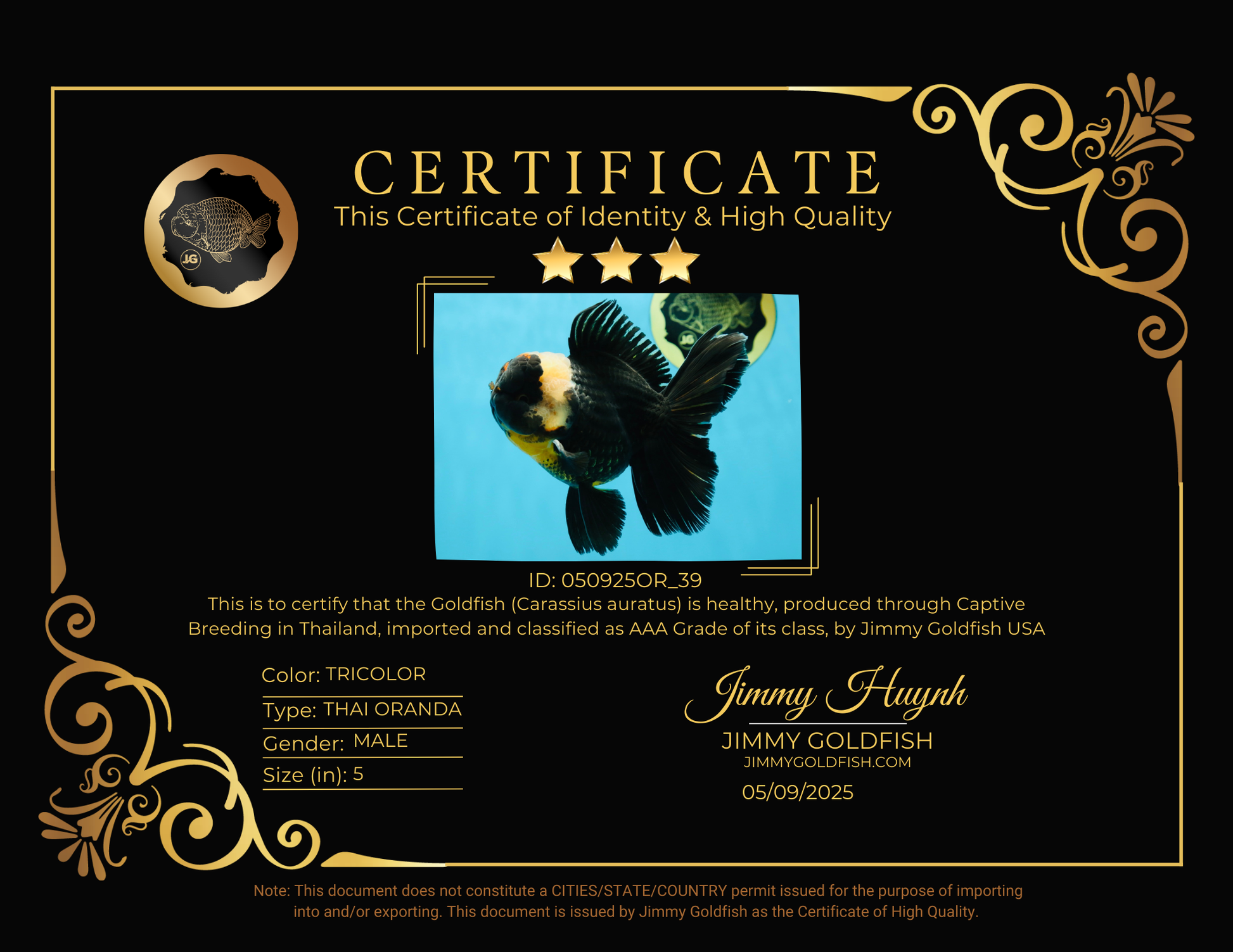 AAA Grade Tricolor Oranda Male 5 inches #050925OR_39
