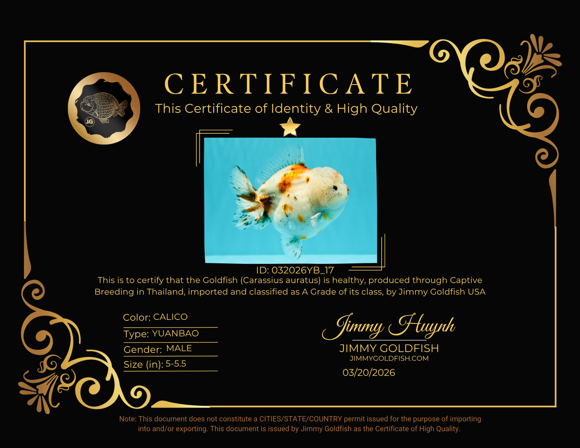 A Grade Calico Yuanbao Male 5-5.5 inches #032026YB_17
