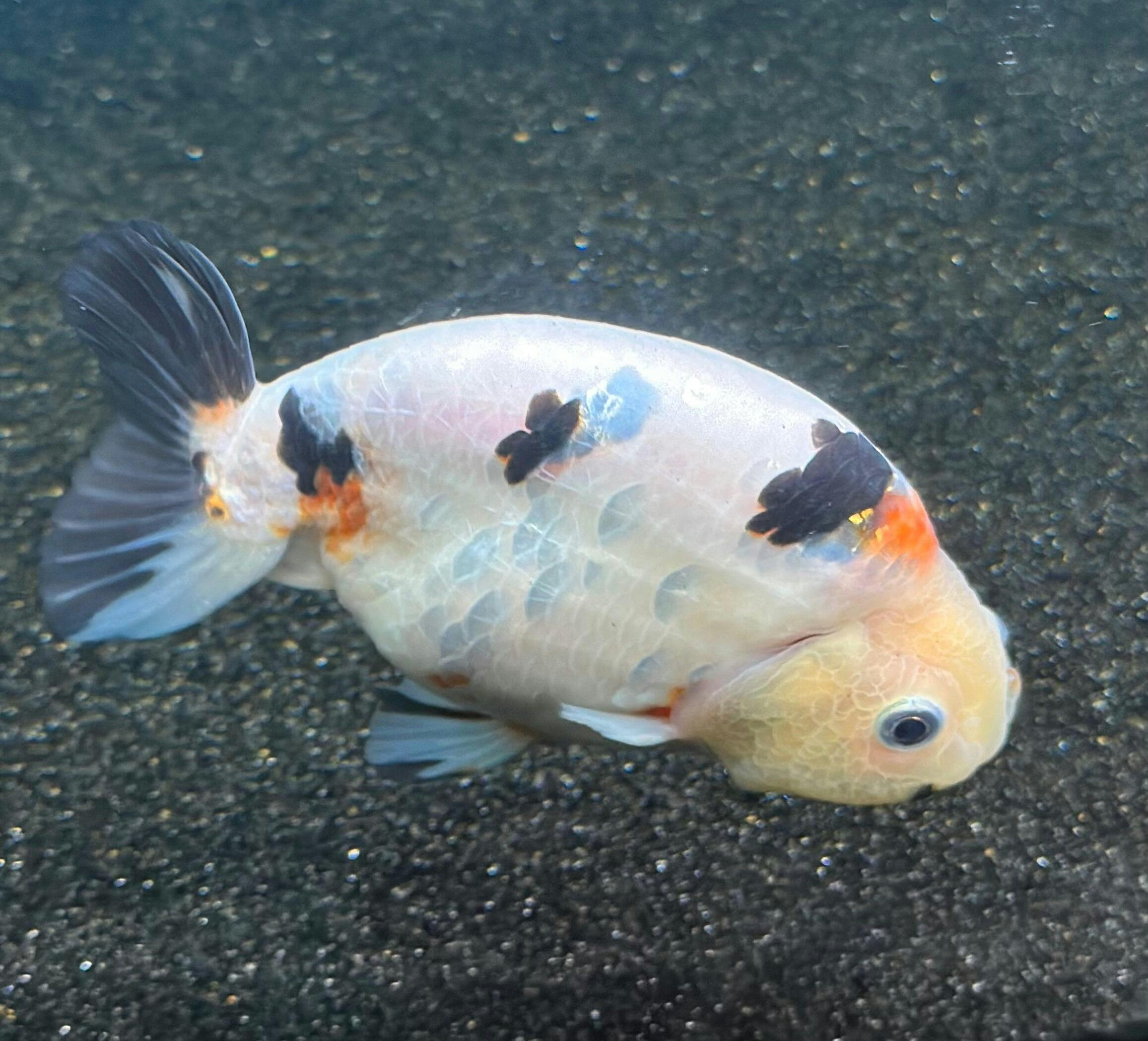 A spotted sweetheart with unique markings and peaceful charm. This Cow Ranchu adds playful personality to any community tank.