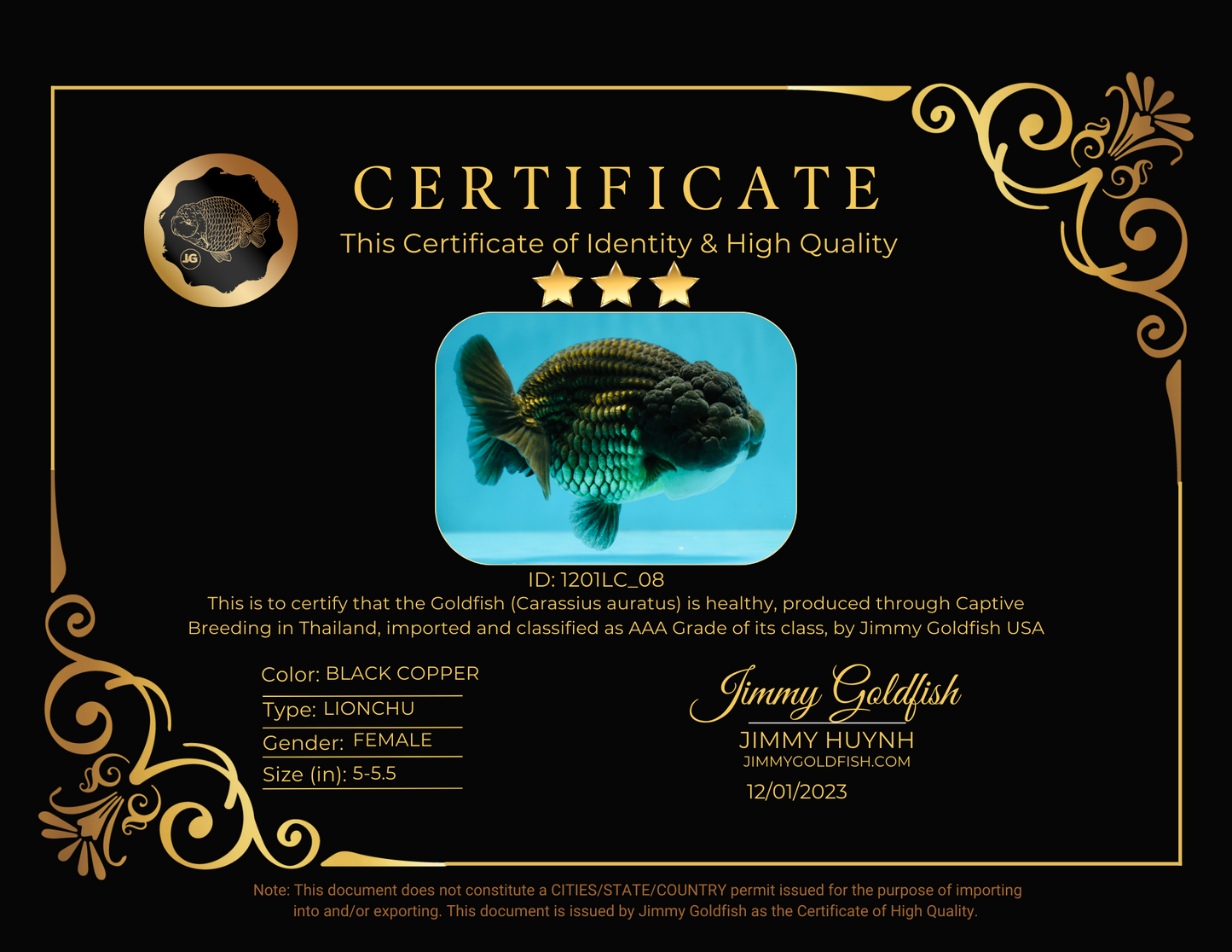 Adding a bit of wow to your aquarium? Look no further than the AAA Grade Black Copper LionQueen! With its unique color mark and high quality body, this beautiful, premium goldfish will be the life of the party - not to mention super healthy, with a rounded belly and chunky frame. A rare Jimmy Style find that'll give any tank a regal touch! 🦁🤩