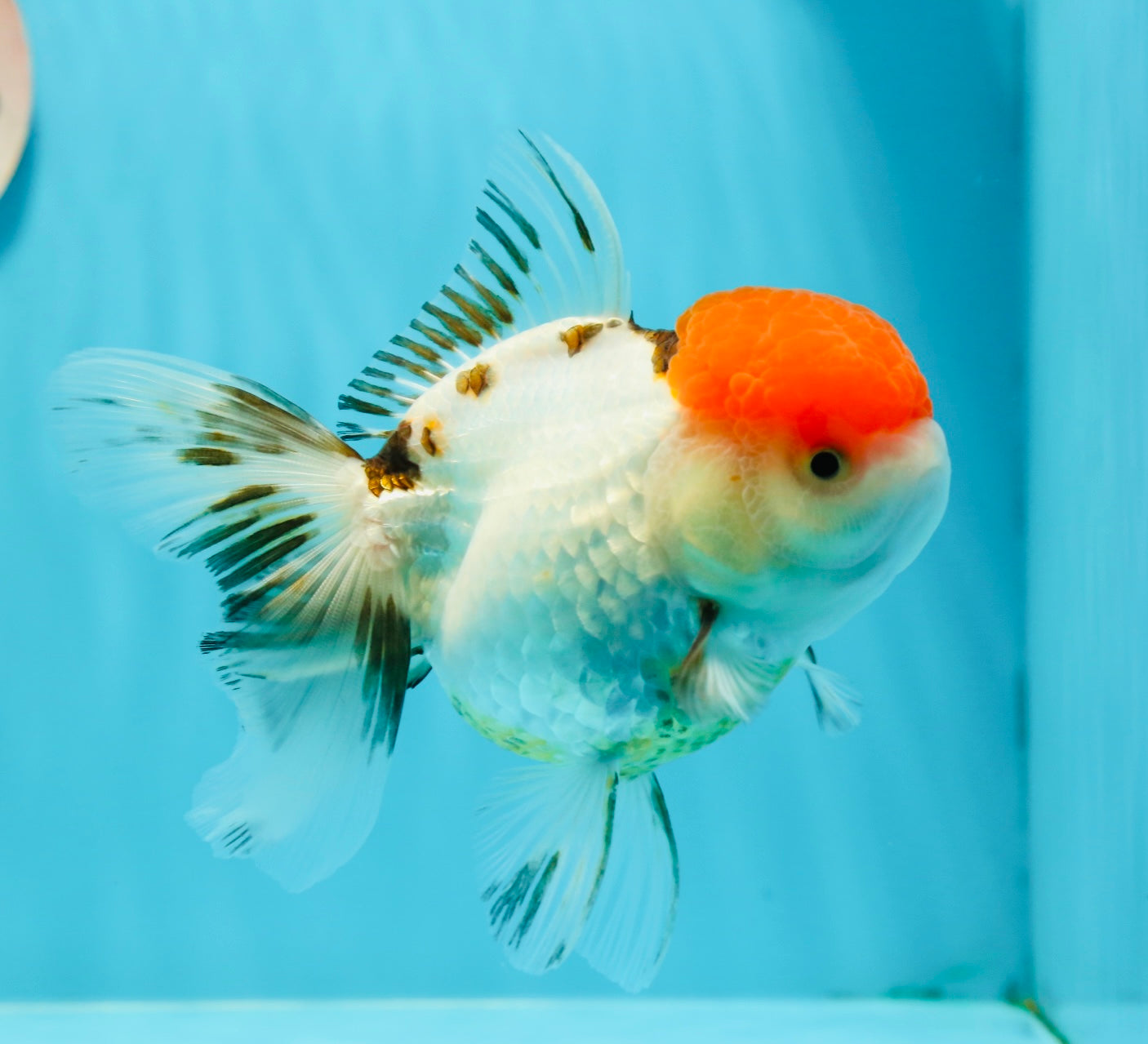 "Add some fin-tastic flair to your aquarium with our AAA Grade Tancho Tricolor Oranda. This unique and beautiful goldfish boasts a lovely color mark and chunky body with a rounded belly. Plus, its high grade and super healthy, making it a top choice for any Jimmy Style tank. 🐠🎉"