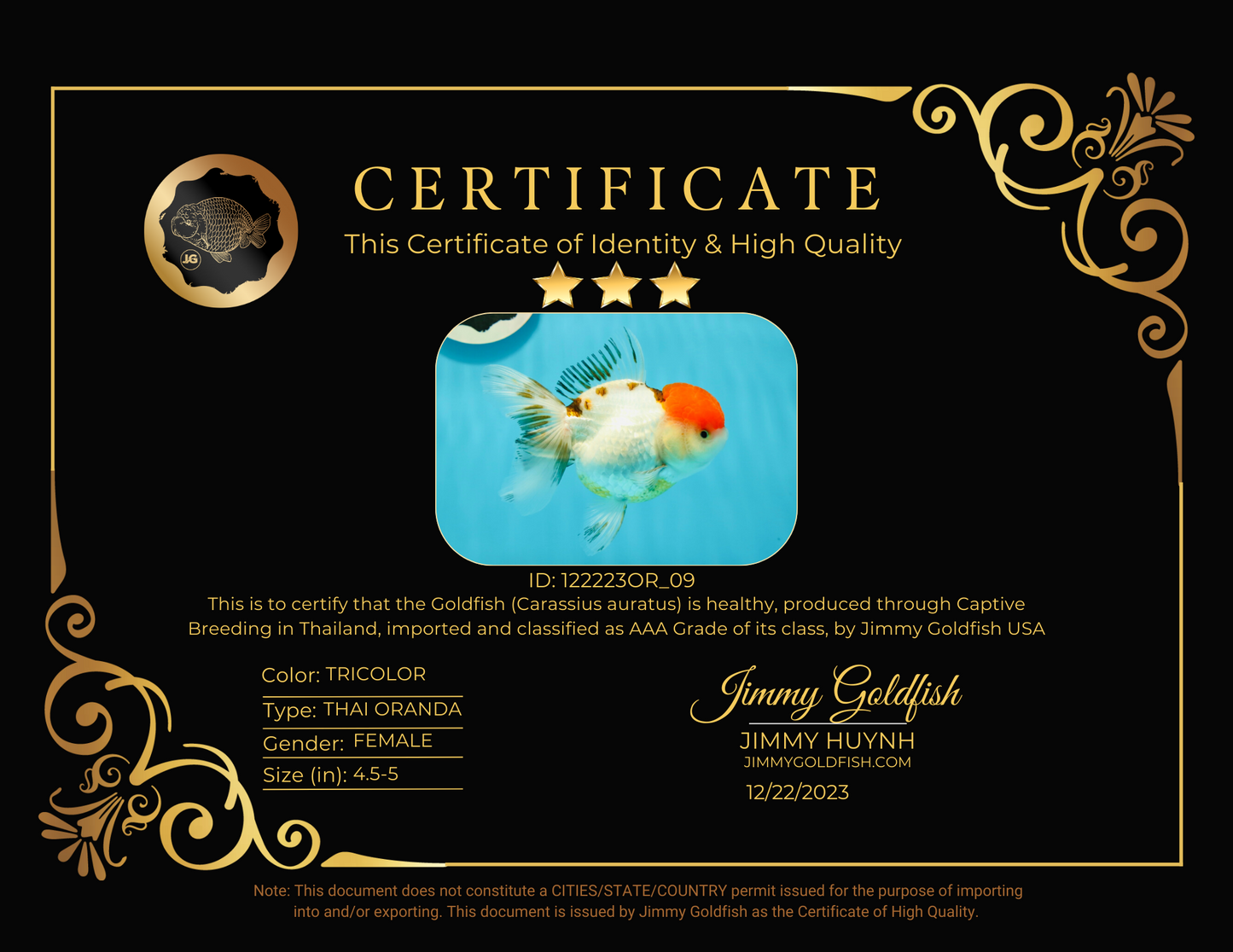 AAA Grade Tomato Head Tancho Tricolor Oranda Female 4.5-5 inches #122223OR_09