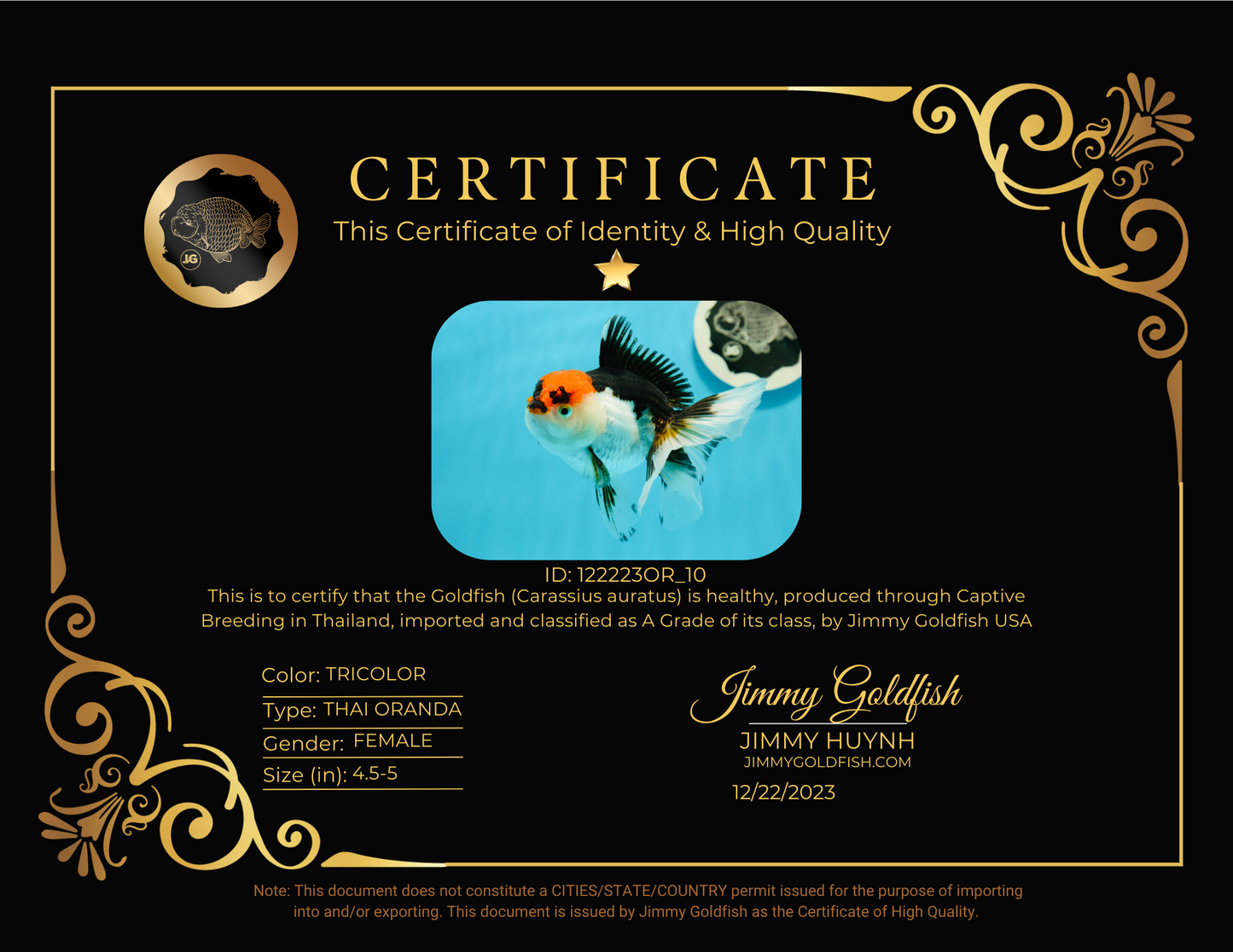 A Grade Vivid Tricolor Oranda Female 4.5-5 inches #122223OR_10