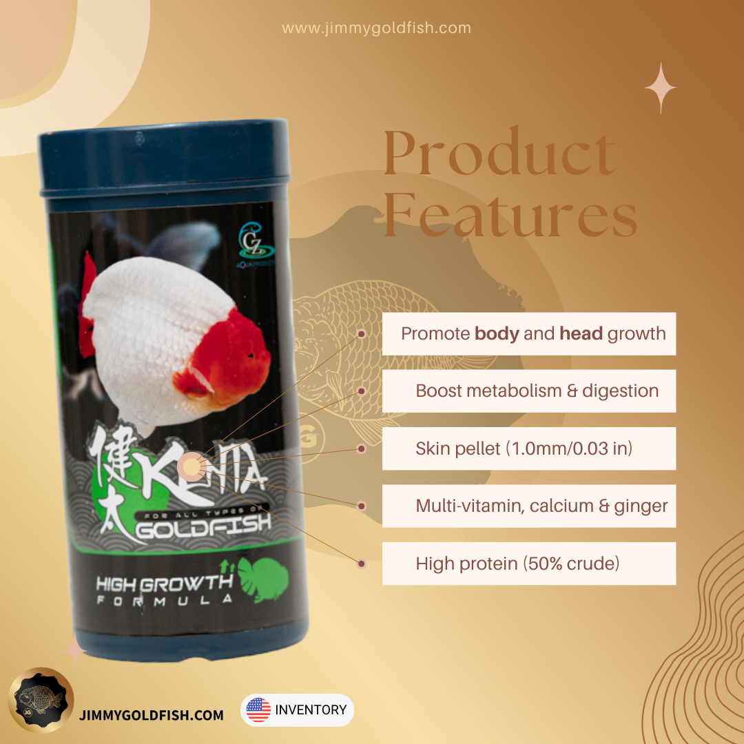 Experience the incredible effects of Kenta High Growth Goldfish Food, designed to promote enhanced body and head growth. Every 150g pack of sinking pellets is packed with high protein to stimulate body and head growth, regardless of whether the fish have head genes or not. Coupled with essential fatty acids, Omega-3, and multivitamins to bolster metabolism and digestive stimulation, Kenta High Growth is an ideal main source of nutrition for your goldfish.