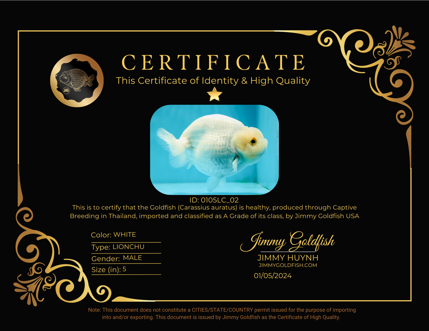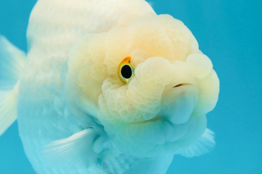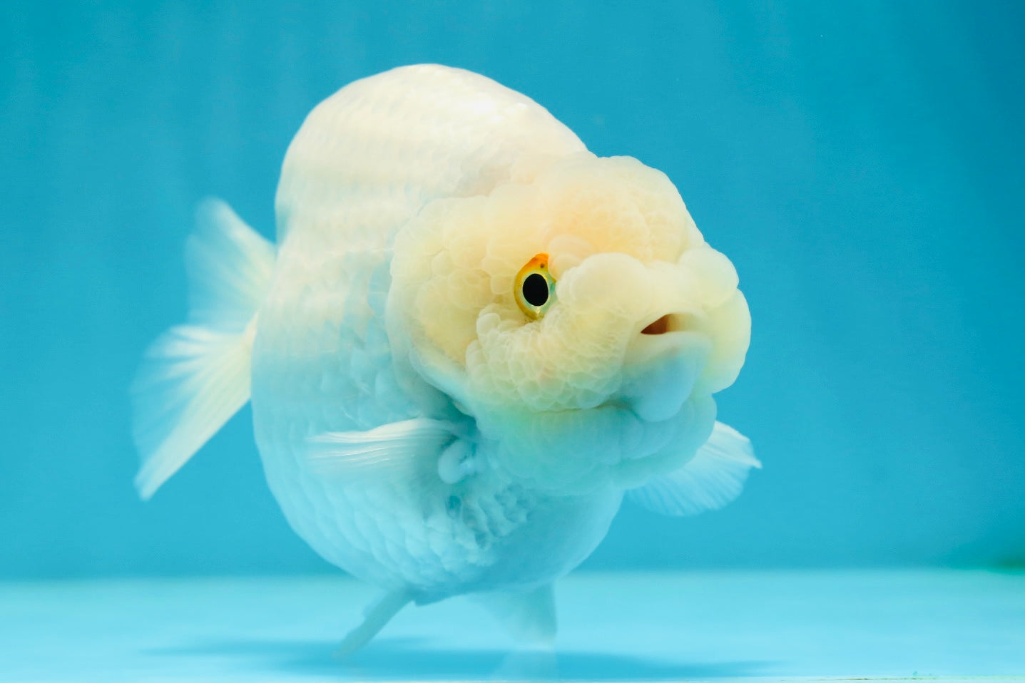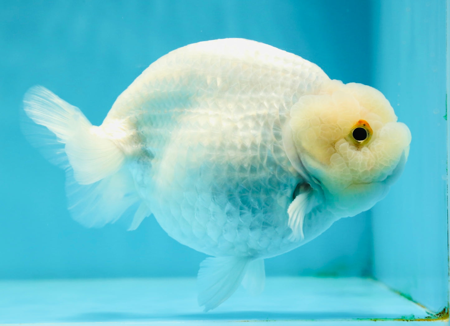 🐠 A Grade Snow White LionKing is a uniquely colored, high quality goldfish with a beautiful premium appearance. Its cute, playful character and healthy, young face make it a top selection for any aquarium.