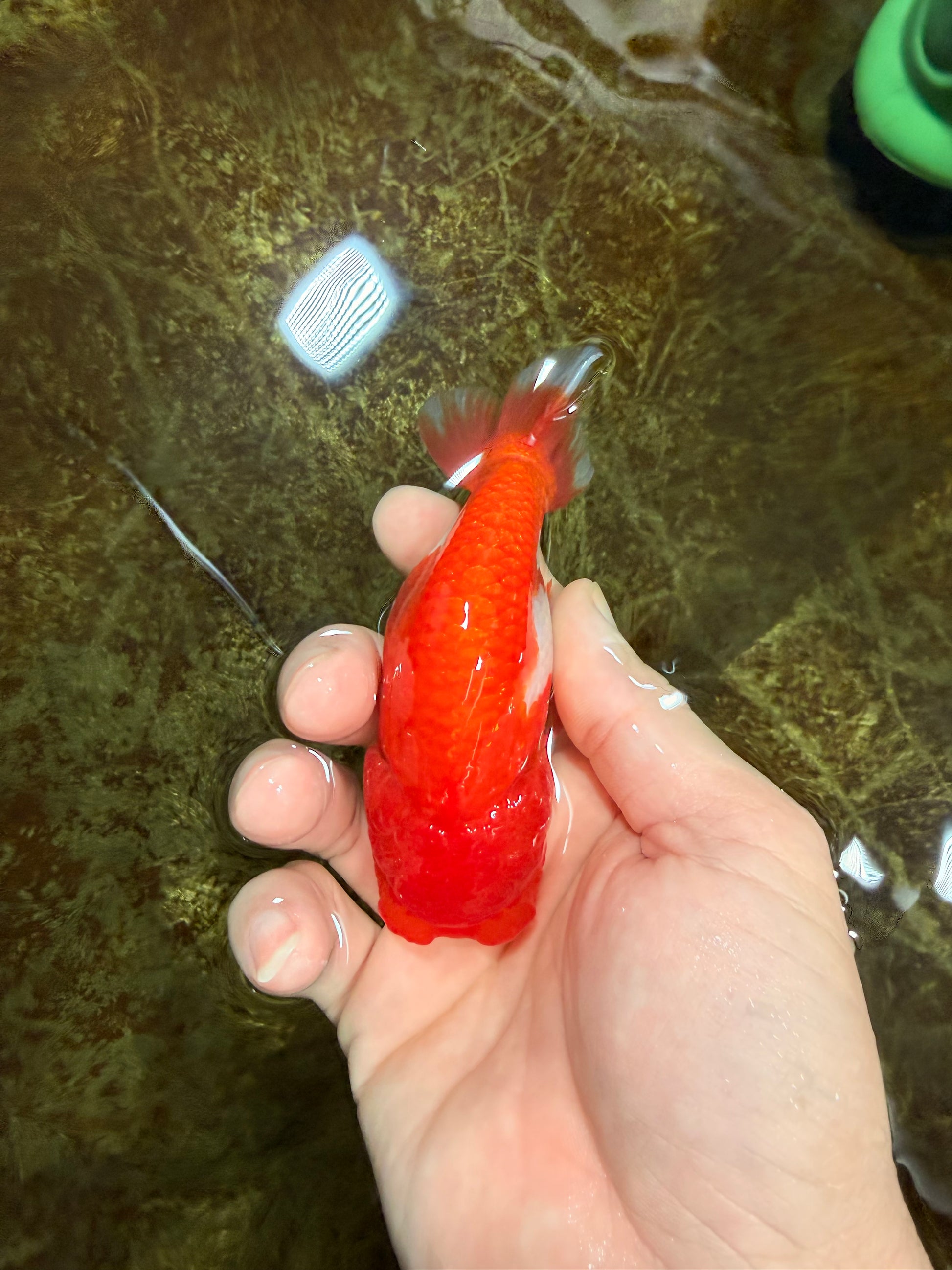 A sweet Lionchu with clean red-white contrast and a rounded profile. Gentle swimmer and very beginner-friendly. Lovely choice for a peaceful fancy tank.