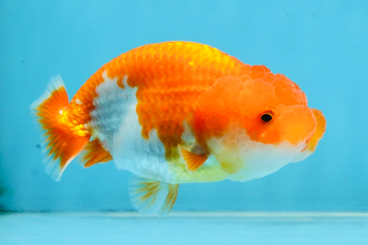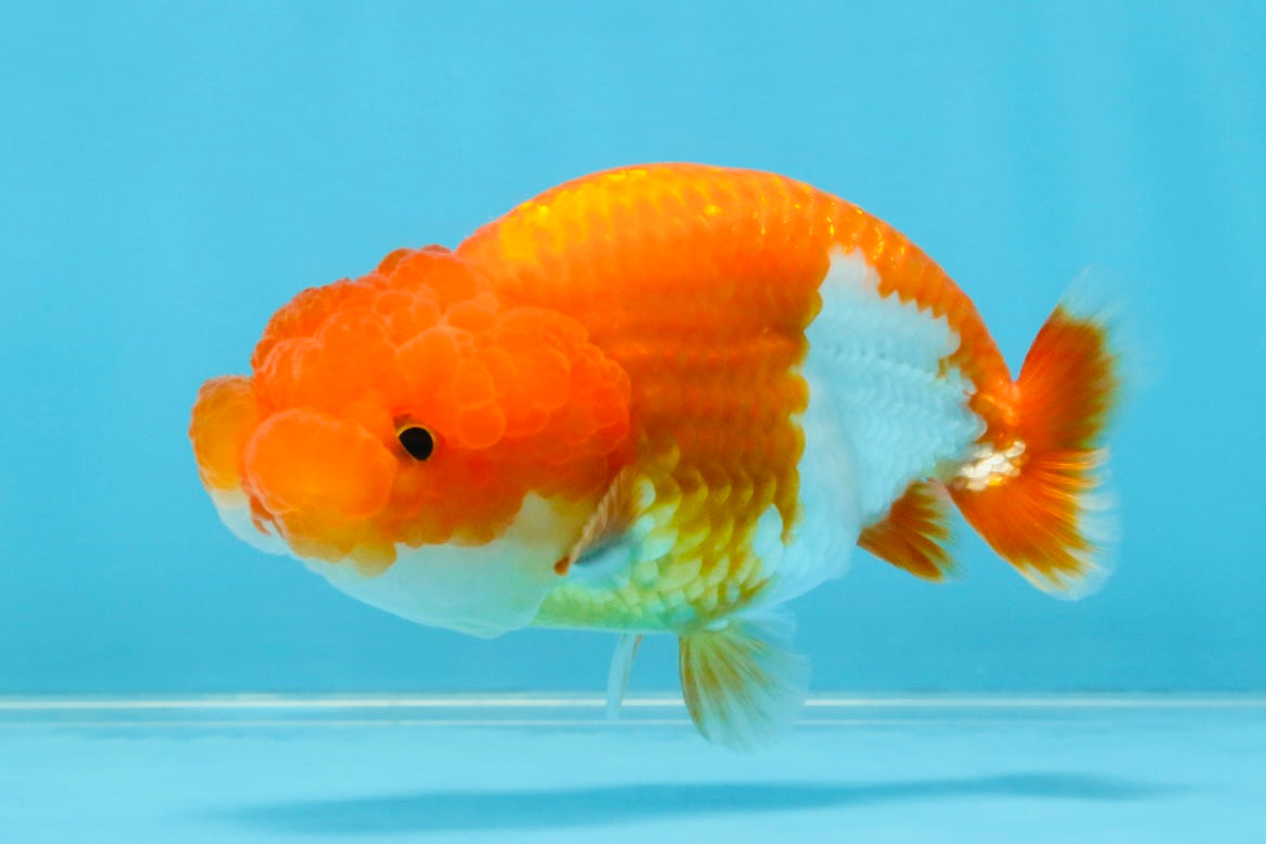 Sweet Lionchu with clean red-and-white contrast and a rounded look. Gentle swimmer and beginner-friendly temperament. A classic fancy goldfish that fits any setup.