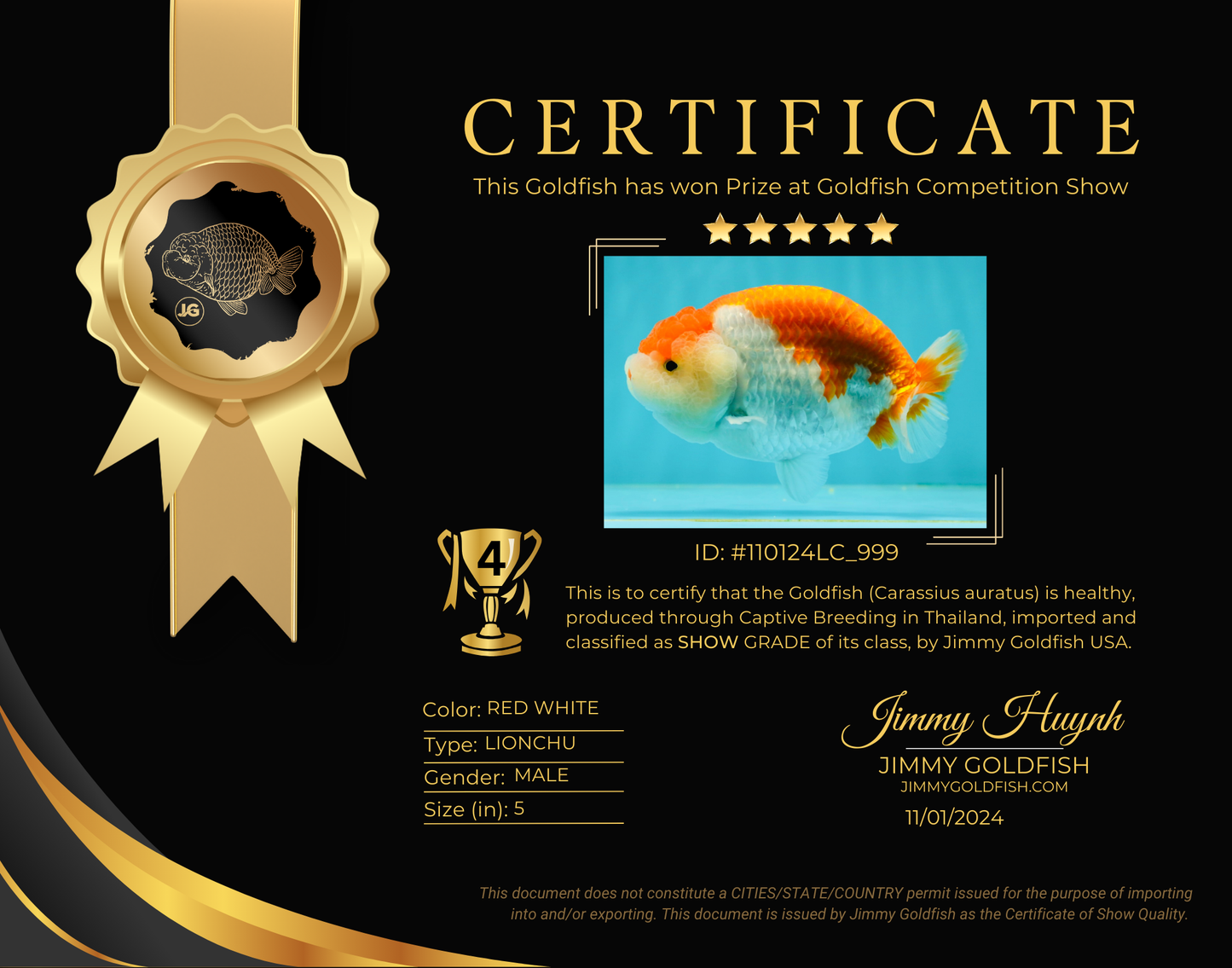 SHOW GRADE 4th Prize Winner Red White LionKing 5 inches #110124LC_999 include Trophy & Painting
