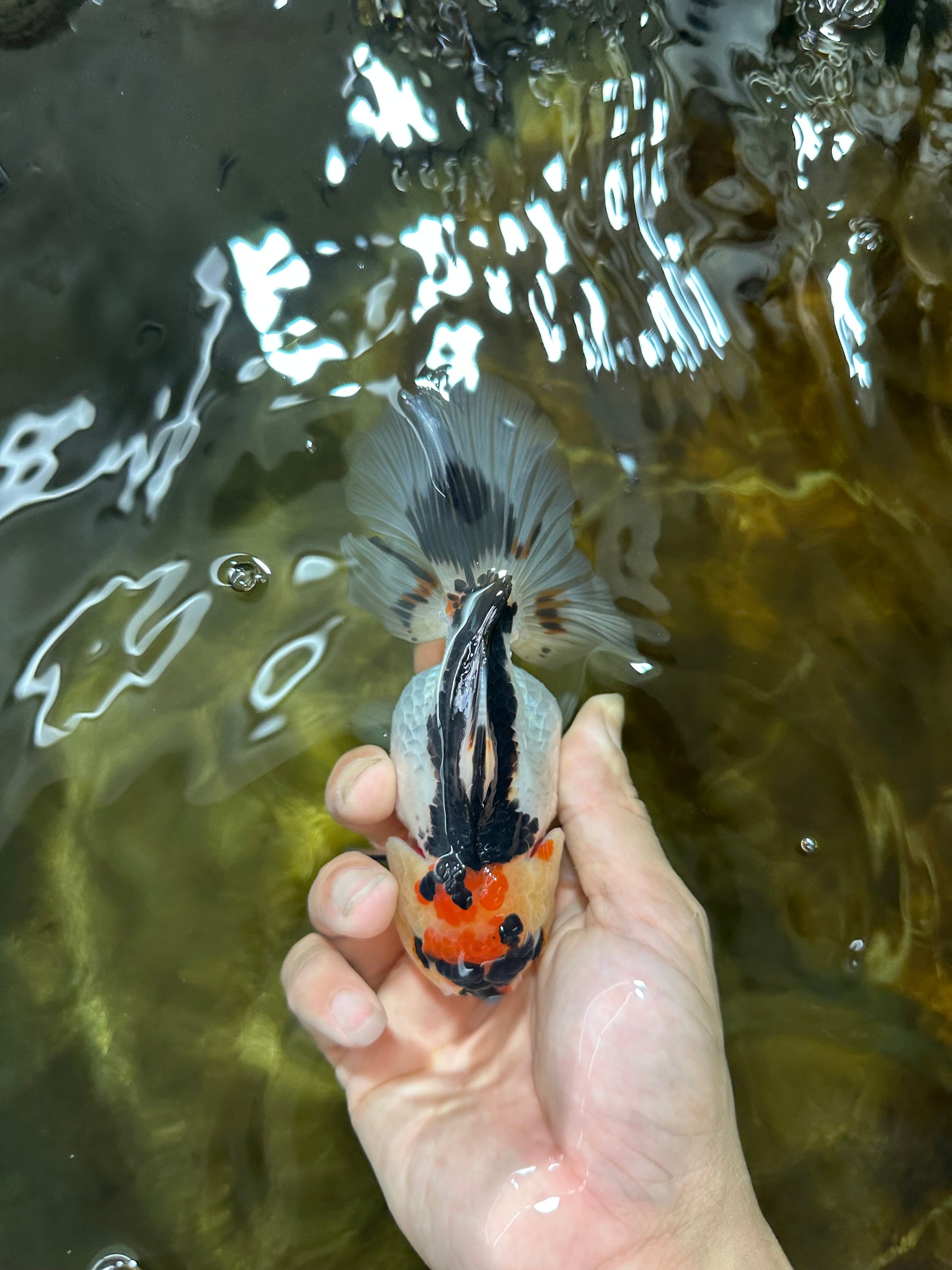 Adorable Tricolor Button Eyes Oranda Female 5 inches #080825OR_13