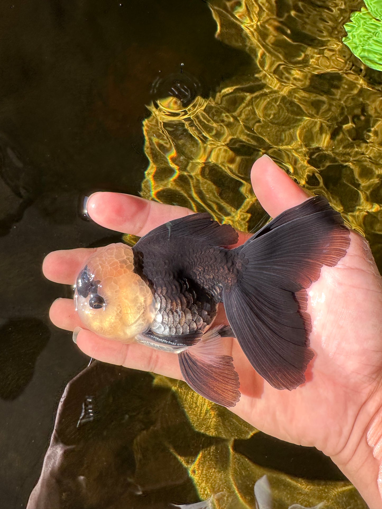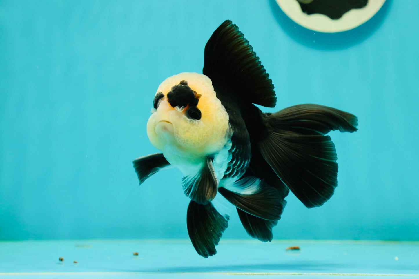 This A Grade Lemonhead Panda Button Eyes Oranda is a unique and high-quality goldfish with a playful and cute character. With its lemon head panda color mark, it adds a fun twist to any aquarium. Its premium selection ensures a healthy and beautiful addition to your collection.
